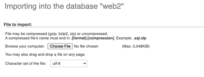 - Pilih dan upload file .sql