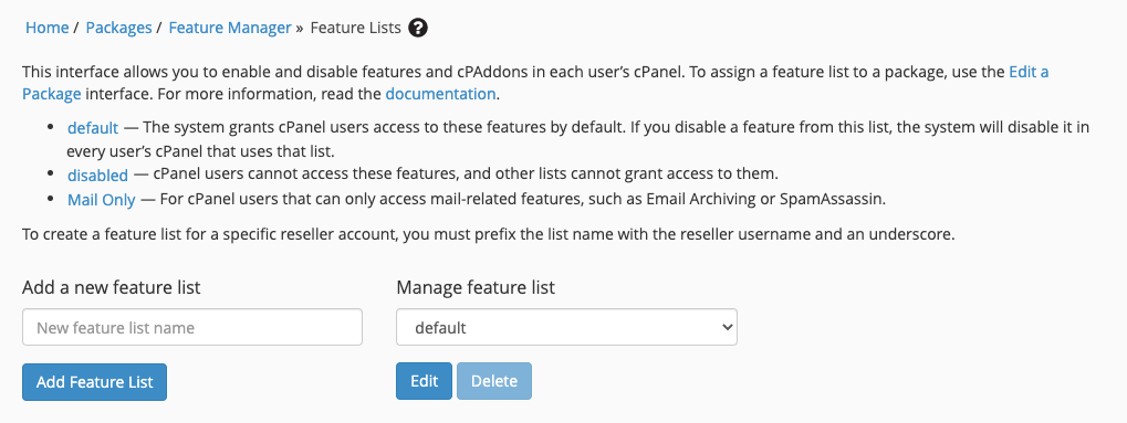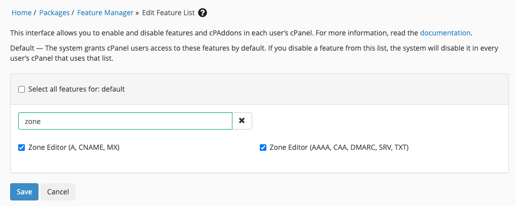 Untuk menampilkan DNS record kembali, Anda dapat masuk ke WHM lalu arahkan ke menu fitur Home >> Packages >> Feature Manager