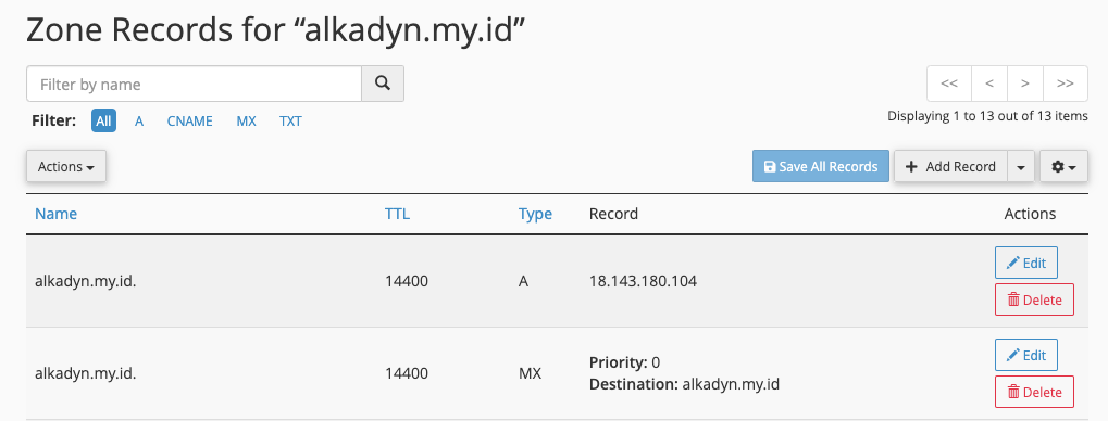 Klik Save dan coba kembali ke menu zone editor maka DNS record seharusnya sudah bisa tampil.