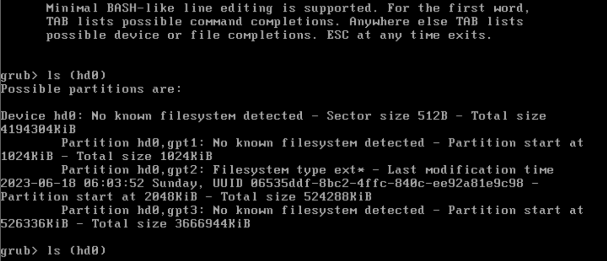Kembali ke menu grub lalu tekan c untuk masuk ke command prompt grub.