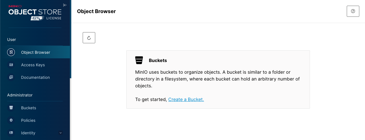 Dengan MinIO client, Anda dapat manage bucket melalui commandline.