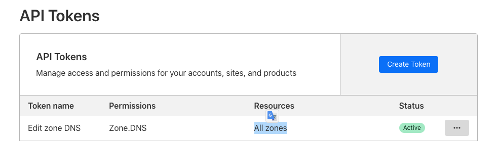 Langkah awal agar dapat mengelola DNS menggunakan API yaitu dengan membuat API Token lalu beri permission seperti contoh berikut.
