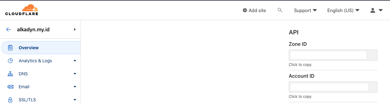 Selanjutnya cek Zone ID pada domain untuk digunakan sebagai zone_identifier pada saat menjalankan cURL