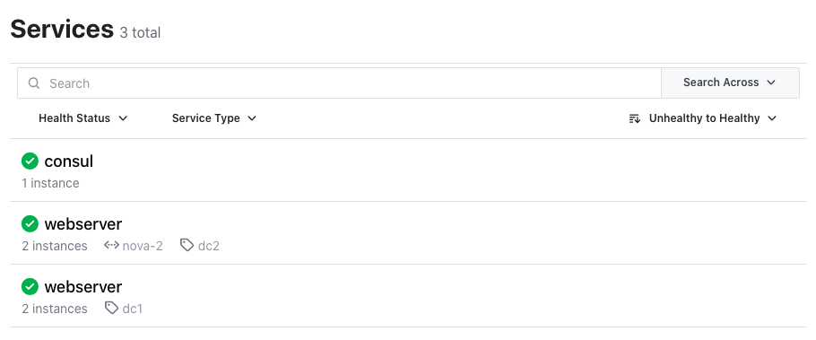 Agar efisien waktu, Anda dapat membuat koneksi peer pada nodes di cluster consul yang berbeda lalu export service agar dapat dimonitor pada satu WebUI consul.
