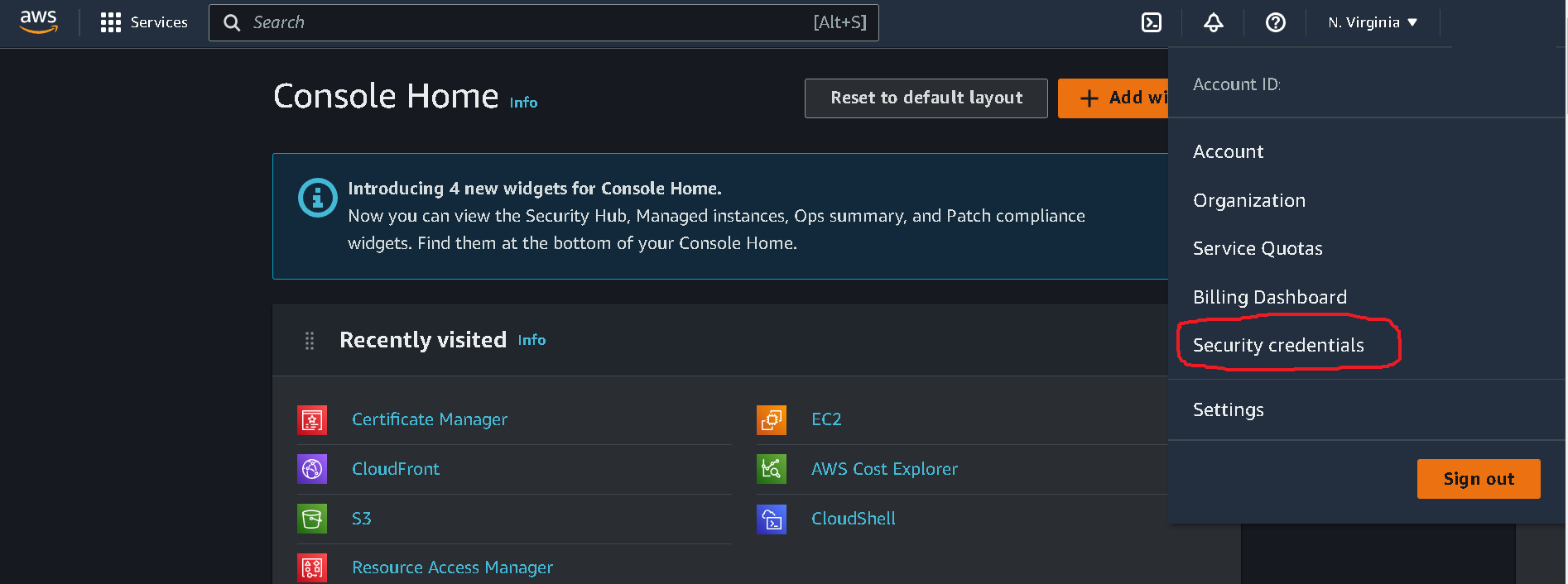Pada menu dibagian atas, klik tombol dropdown pada username lalu pilih Security credentials