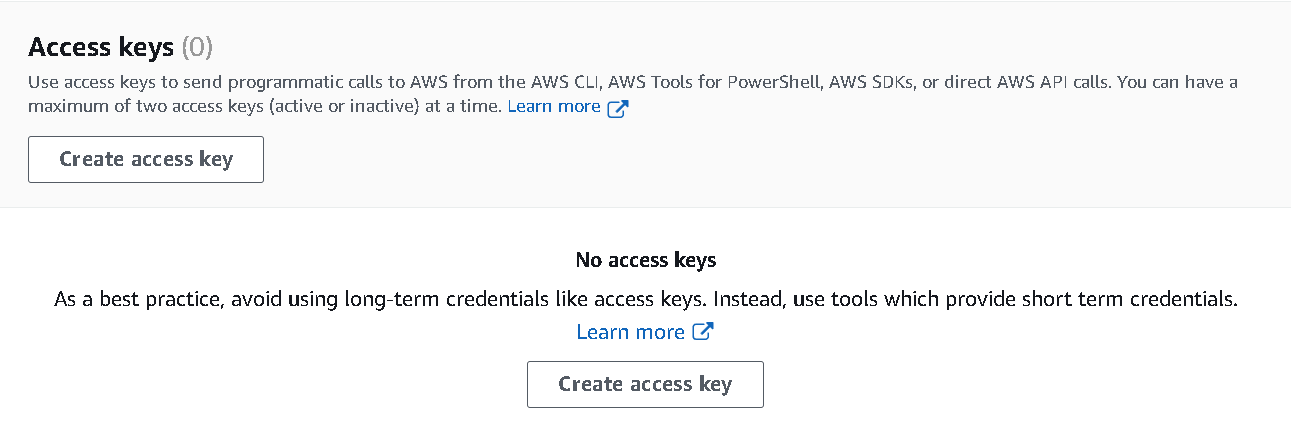Selanjutnya pada bagian Access keys, klik Create Access key lalu klik checkbox