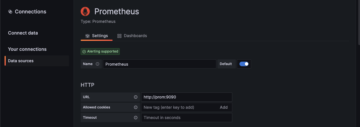 Untuk bagian Name dan Folder dapat Anda sesuaikan lalu pilih prometheus dan klik Import