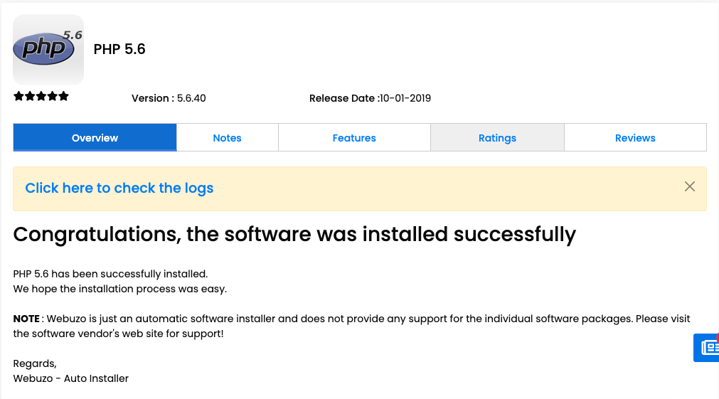 root 203891 18.5 0.0 3888 932 ? S 20:32 0:00 | \_ tar -zxf /var/softaculous/apps/php56/php56-x86_64.tar.gzTerakhir Anda dapat melihat progressnya akan langsung berhasil.