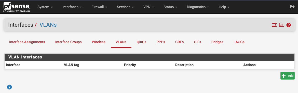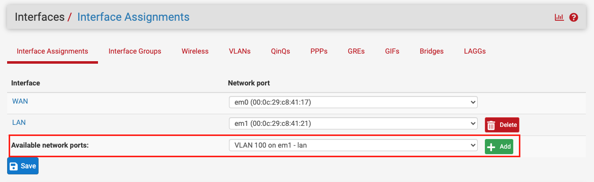 Kembali ke tab Interface Assignments. Pilih Add pada interface VLAN.
