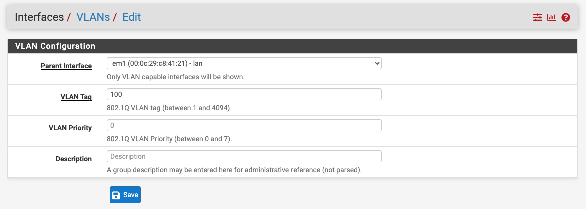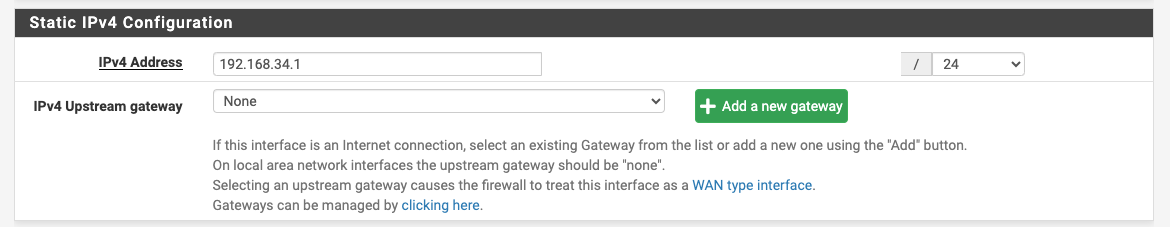 Disini tidak perlu menambahkan IP pada interface VLAN. Sebab akan dialokasi untuk service load-balancer kecuali IP yang mengarah ke router pfSense (192.168.34.1/24).