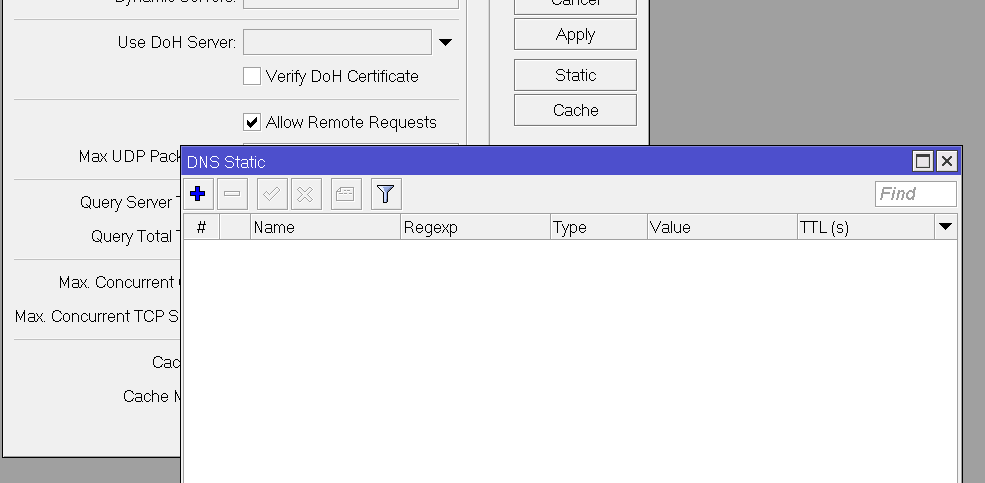 Pada lingkungan server menggunakan router mikrotik sebagai DNS server dan karena suatu kebutuhan dari aplikasi, Anda sebagai Administrator diminta untuk menambahkan wildcard DNS (*.) di mikrotik.