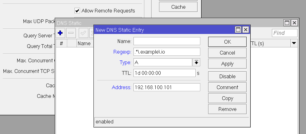 ip/dns/static add address=192.168.100.101 regexp=".*\\.example\\.io"